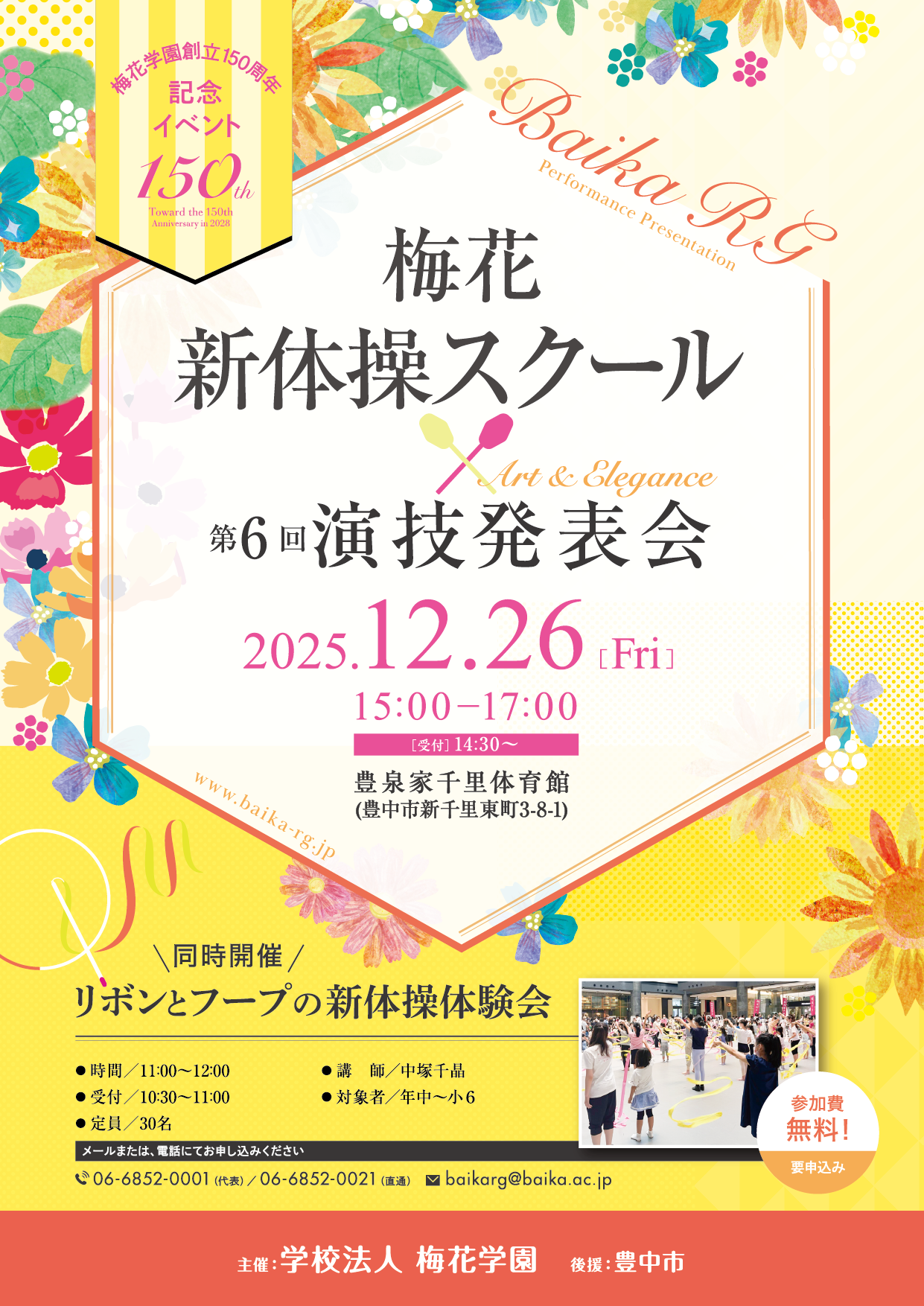 第6回 梅花新体操スクール演技発表会を開催します!【リボンとフープの体験会も実施】